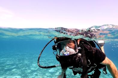 Coral Reef CPR scientists explain the state of coral bleaching in the Maldives in April 2016 using full face mask technology